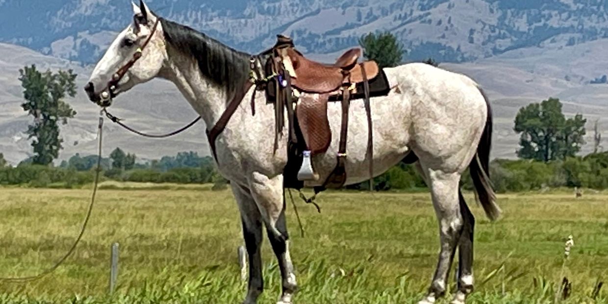Sterling is a 10 year old gray gelding that stands 15.1 hands and is stout made. This guy has been used for doing all the ranch chores including sorting and gathering cows off of the mountain pastures and has logged hundreds of miles in the back country trail riding through the mountains. This guy is an experienced Rope Horse that has drug hundreds of Calves to the Branding fire. Always stays calm cool and collected. This guy has a fast walk and does not spook at things along the way. Been ridden by young and old and is easy to operate. Has a good one hand neck rein on him and is a nice horse to go get any job done on. This horse is gentle and has no buck or hump in him. You can saddle him up on a cold morning and know that you’re not going to have any silly business. This guy has big feet big bone and is very sound. Crosses water, Bridges and most obstacles with ease. This guy is easy to catch and is very people friendly with a big soft black eye. This guy will be suitable for most riders that know how to sit up and ride. Registered and In the prime of his life. come check out Sterling at the ranch or call or text for more information and price. 4065449987